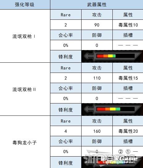 毒狗龙双剑的各强化等级和所需素材如下,该武器需要基底武器炎火铁双刃Ⅱ。