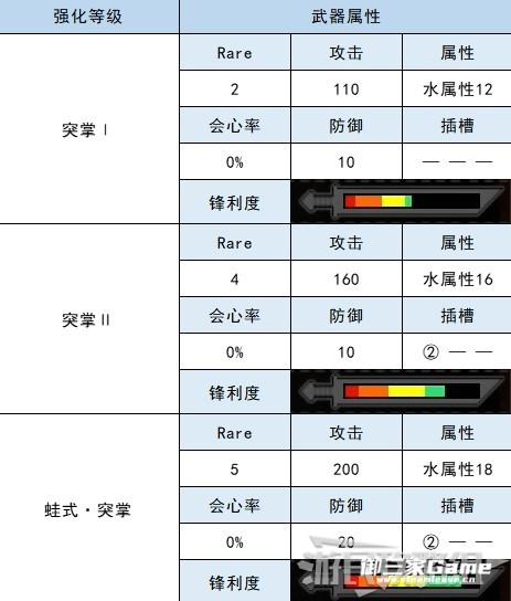 河童蛙长枪的各强化等级属性如下。