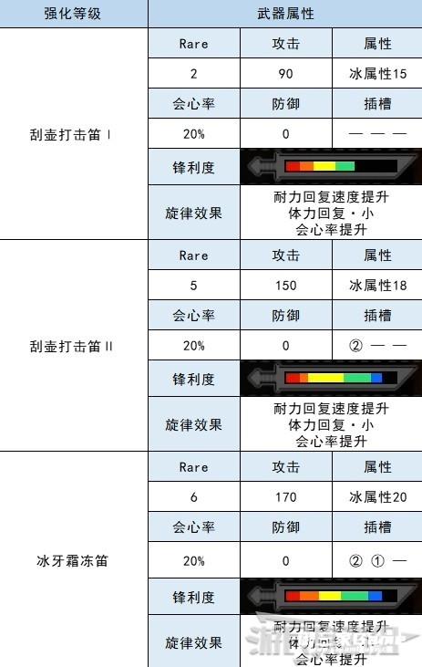 冰牙龙狩猎笛的各强化等级属性如下。