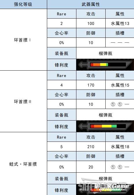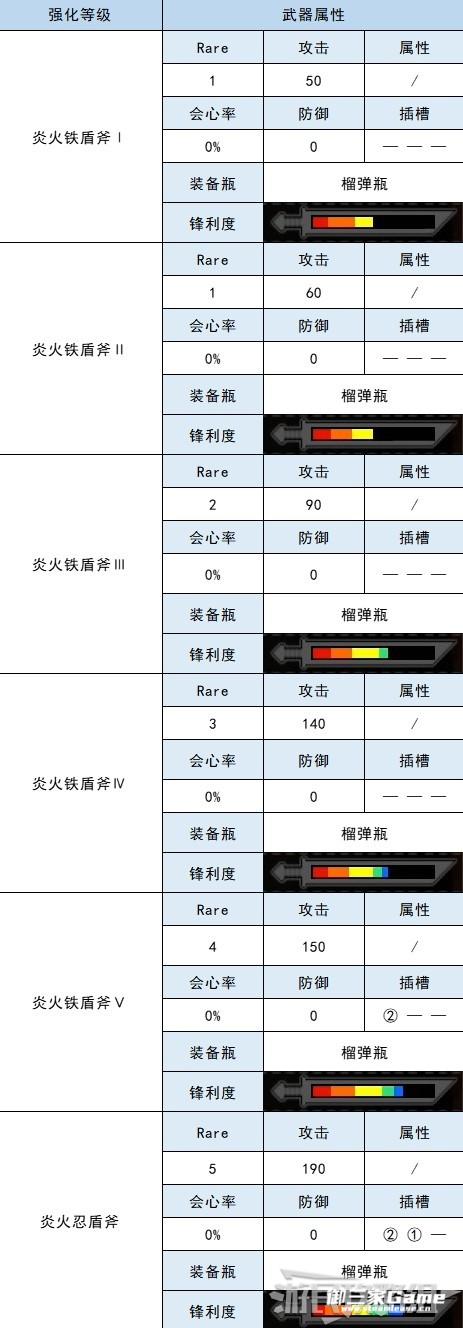 岩龙盾斧的各强化等级和所需素材如下,该武器需要基底武器环首掼Ⅰ。
