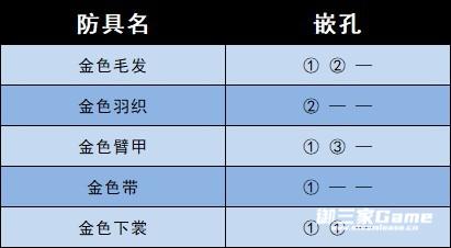 防具嵌孔如下。
