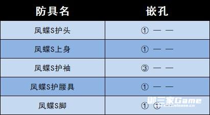 防具嵌孔如下。
