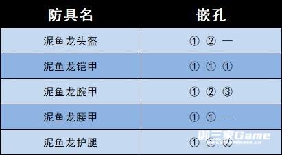 防具嵌孔如下。