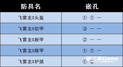 防具嵌孔如下。