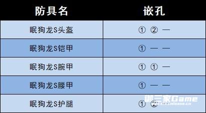 防具嵌孔如下。