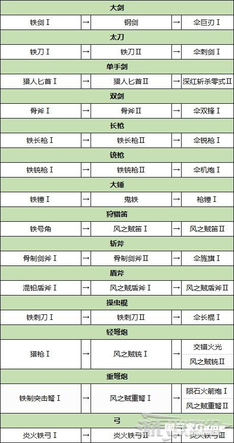 下方武器是村任务★3之前可以制作并推荐使用的武器。