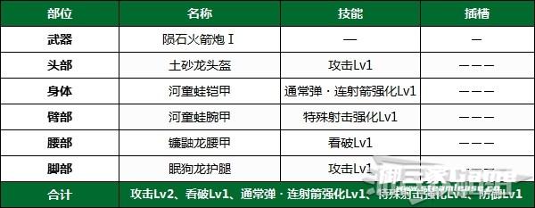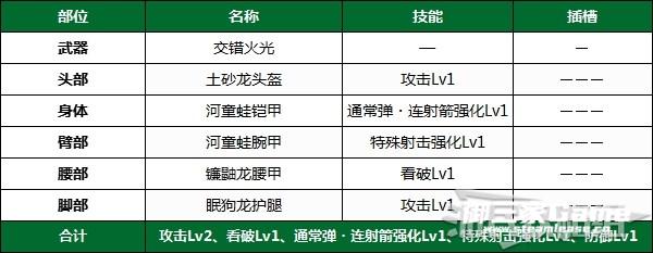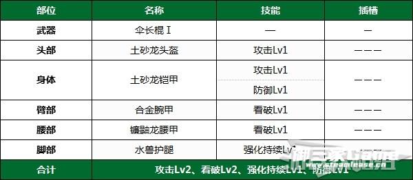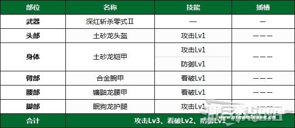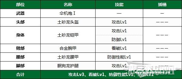 此套配装【防御性能Lv1】,其它部位重点强化攻击。
