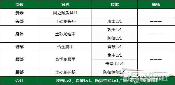 到村任务★3之前,【防御性能Lv2】为上限,因此其余部位可以用于提升攻击力。