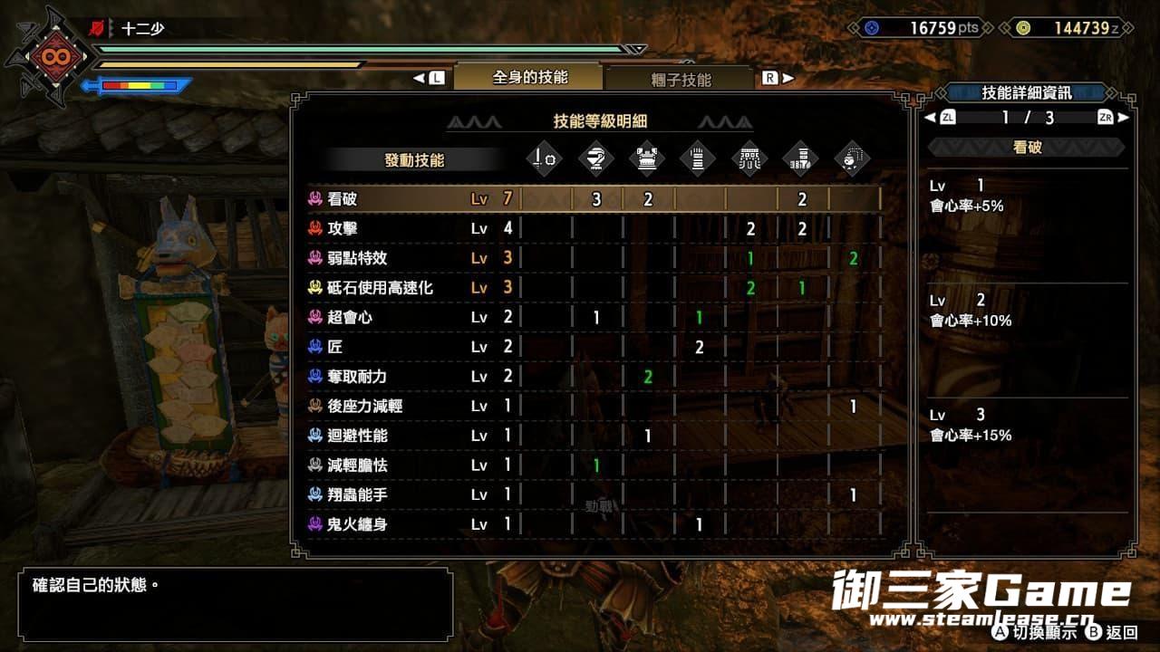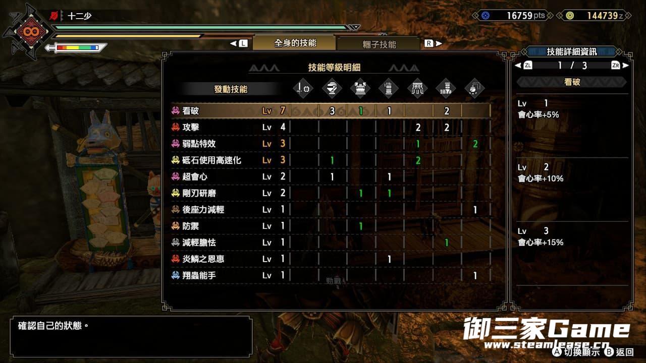 白字会心率只有50% ,弱点会心则是100%,我选择出匠二来延长斩味。