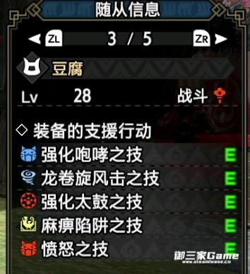 抢夺之技:采集猫20级解锁的固定技能,采集猫异常受欢迎的最大原因,发射回力标,命中时带回怪物素材。采集猫自带偷素材的隐藏被动,关于获取怪物素材的效果会在最下方问答部分单独做很长一段讨论,这里暂且略过。
