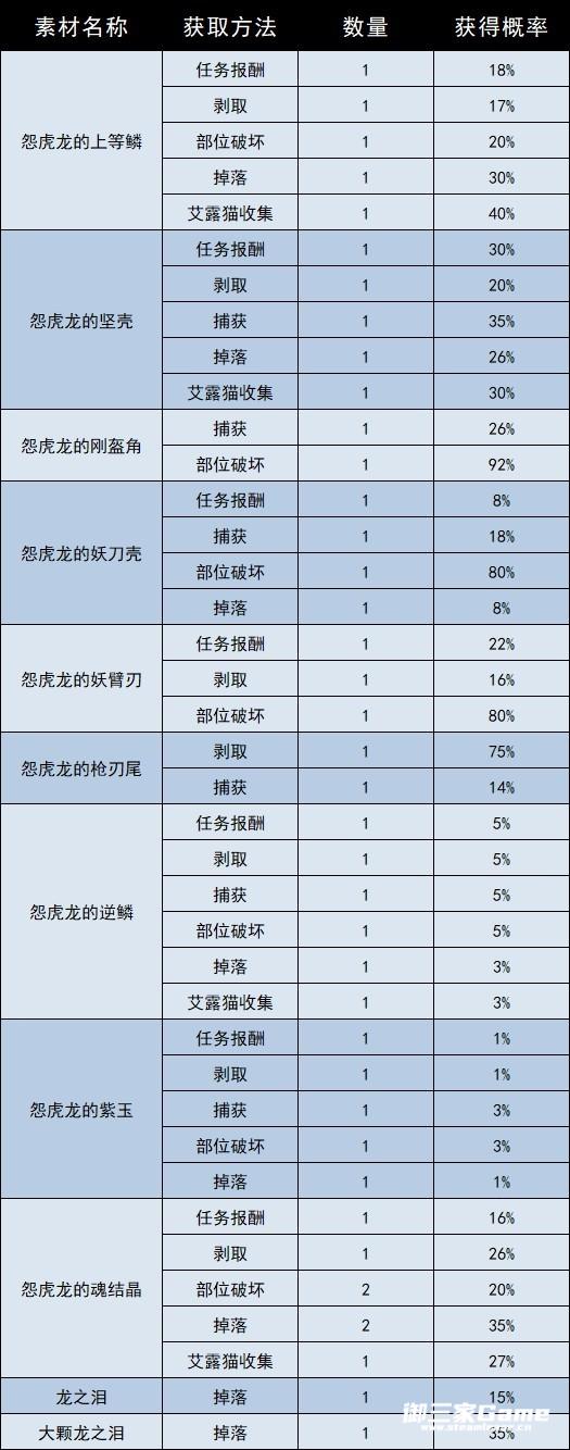 怨虎龙的肉质信息如下。