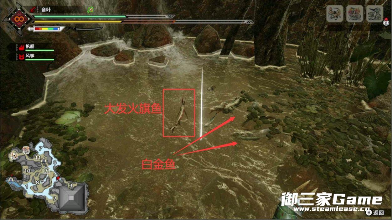 白金鱼:龙鱼样子,身上银色,个头很大,我在水没林的5区这里遇到,记得先清小怪