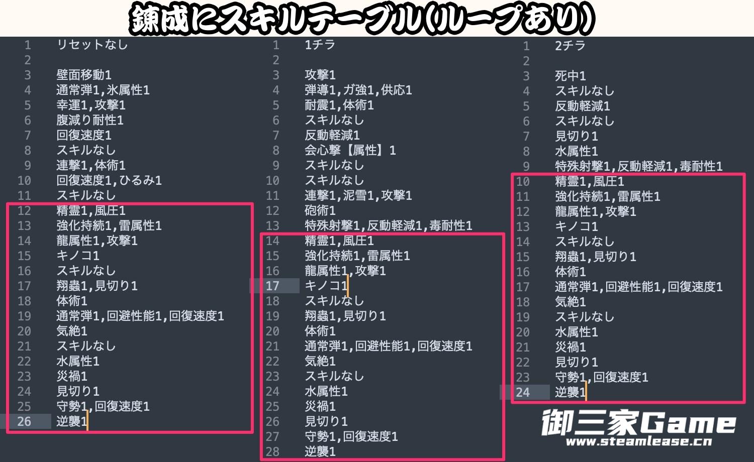 下图为日站的sl结果统计,可以看到从【精灵1/风压1~逆袭1】的炼化结果技能表是循环的。也就是说,类似怪异炼化中也存在与痛风表类似的系统。