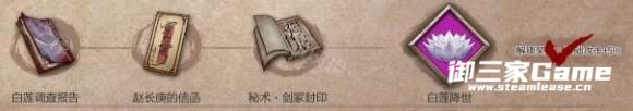 白莲调查报告+赵长庚的信函+秘术·剑冢封印=白莲降世(解锁奖励:基础攻击+5%)