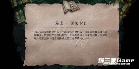 由赵氏研发的新型封印·用以强化血盟封印·将龙家血脉直接与龙脉相连·增加对龙脉的抑制力·受术者会陷入深深的沉睡·但如果并非龙家血脉·则会直接被龙脉反噬导致死亡。