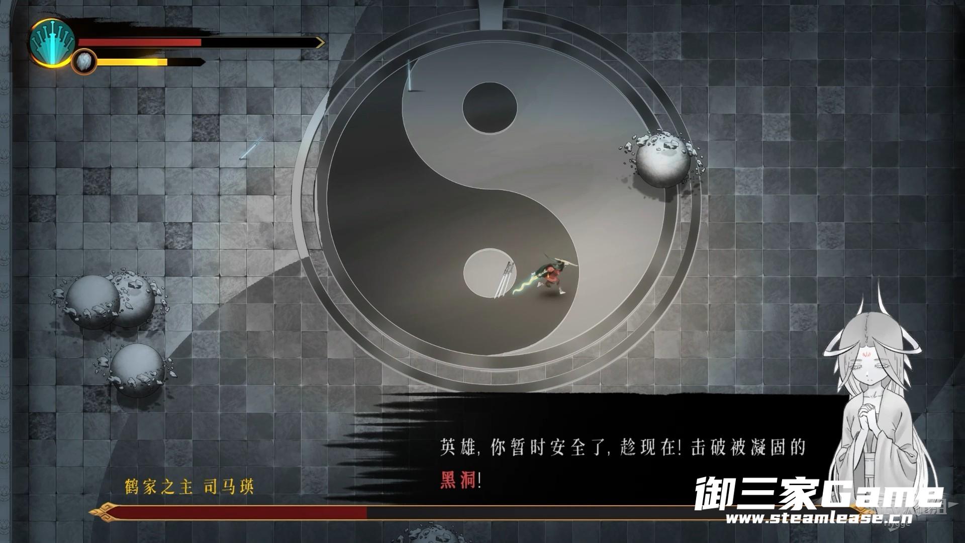 当黑洞扩大至一定程度后,司马瑛的妹妹玥会现身帮助我们凝固黑洞,趁此时快速将场地中的全部黑洞破坏。