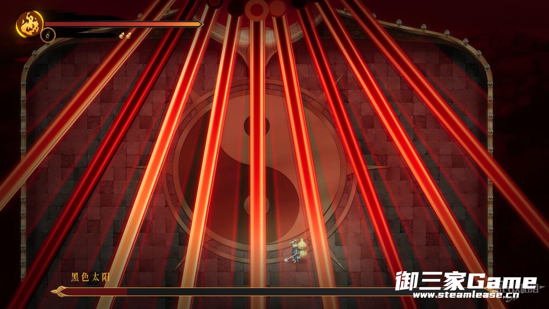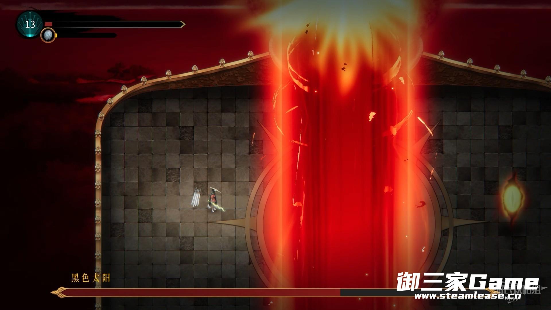 黑色太阳会向场地中连续两次发射数道激光,在激光的缝隙中进行躲避。