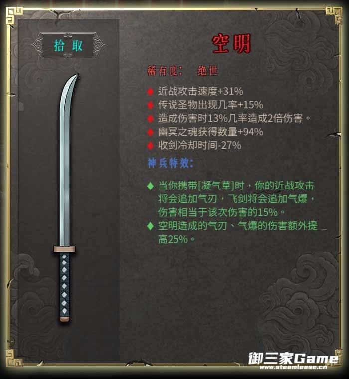 ·当你携带[凝气草]时,你的近战攻击将会追加气刃,飞剑将会追加气爆,伤害相当于该次伤害的15%
