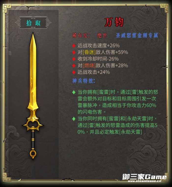 ·当你同时拥有[蛮雷]和[永劫天雷]时通过[雷]触发的怒雷造成的伤害提高50%并且必定触发[永劫天雷]