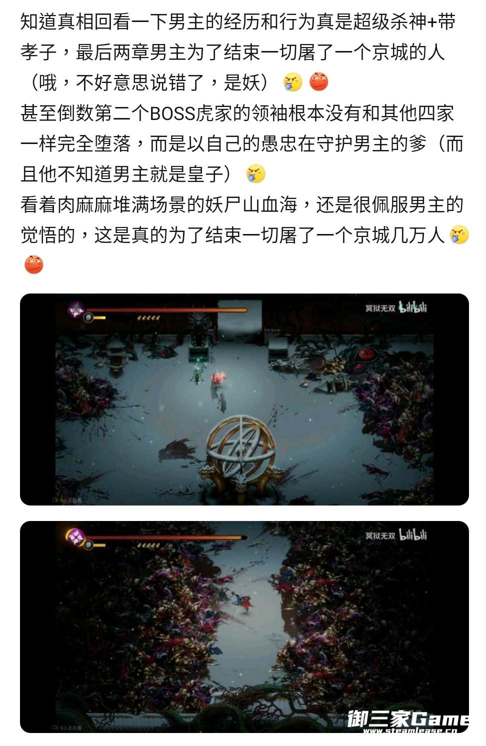 但是有一点不明的就是为什么NPC们都一路追随帮助主角并且要求一定要主角来斩杀妖化的四大家族和剿灭罪魁祸首的京城。