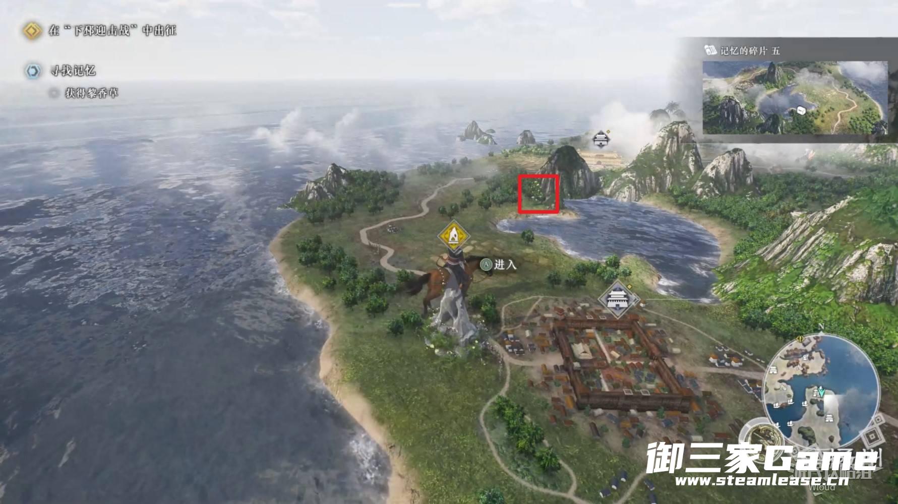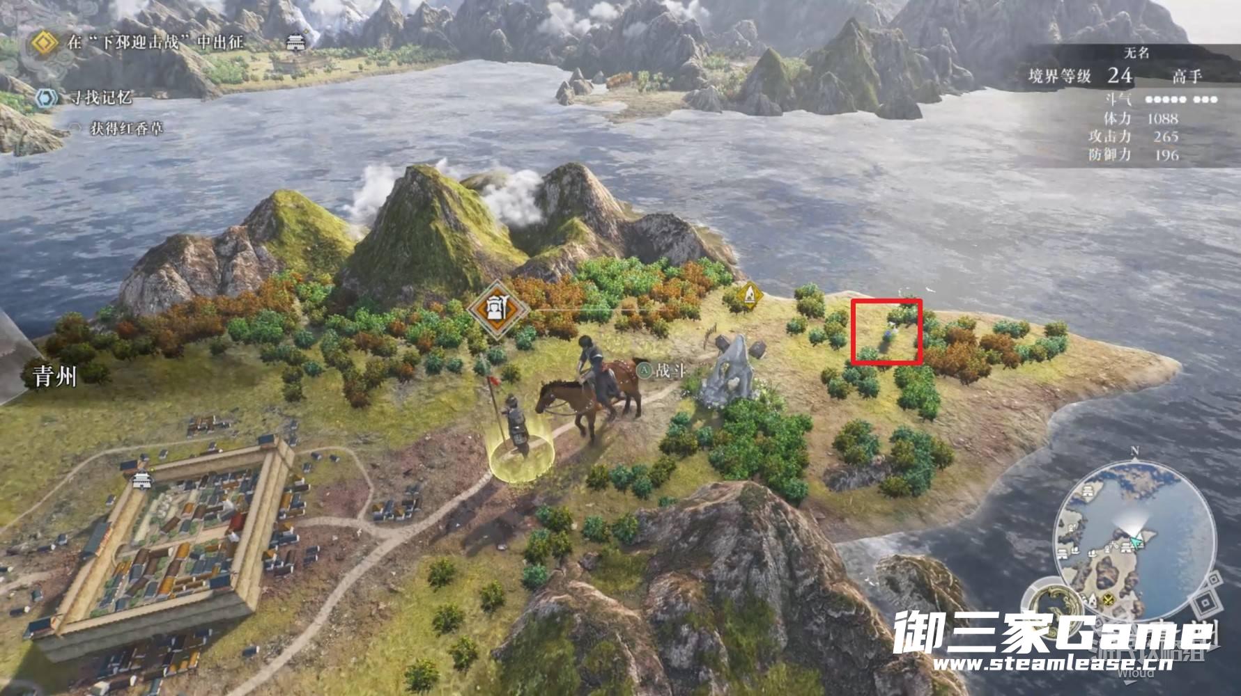 木香草就在大地图下邳城的后方,从元化的位置往左绕一下就能找到。