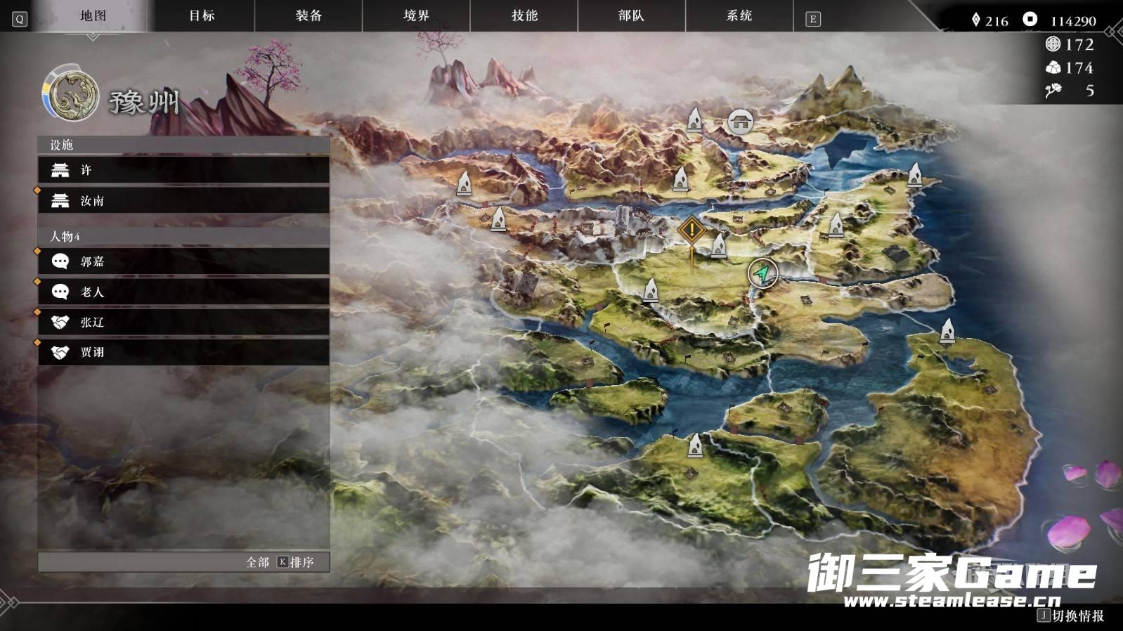 三略位置如下图所示,位于【豫州-许】东侧的水边,靠近与老人交谈即可。