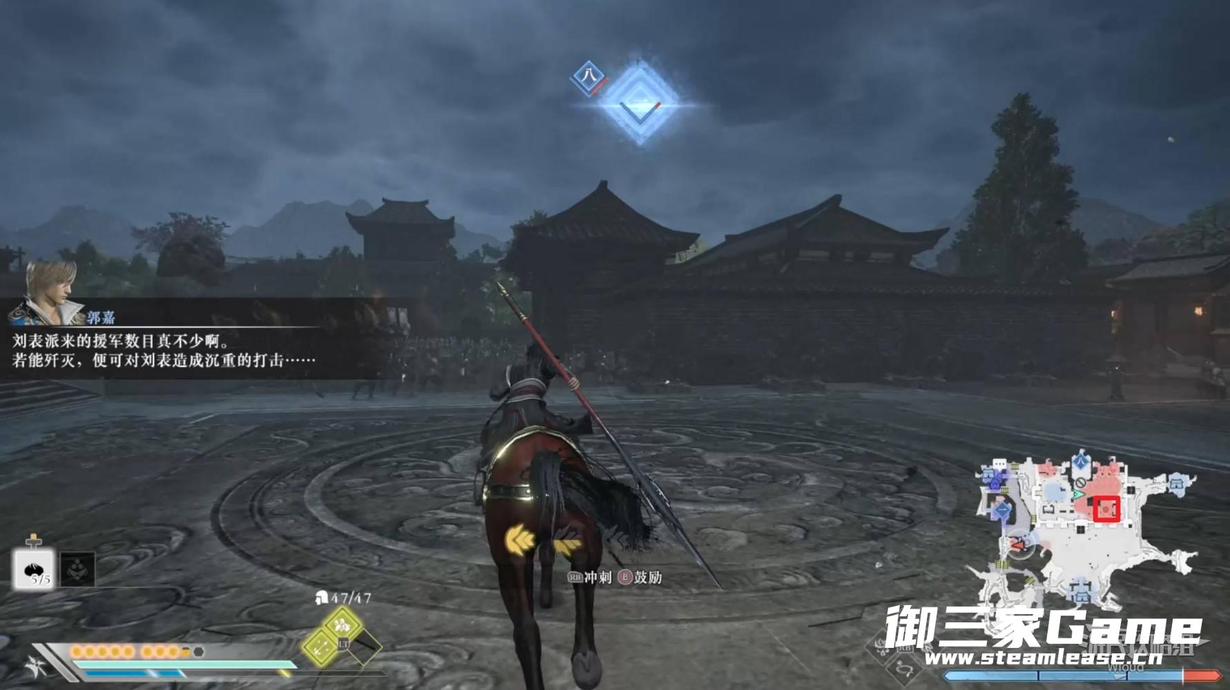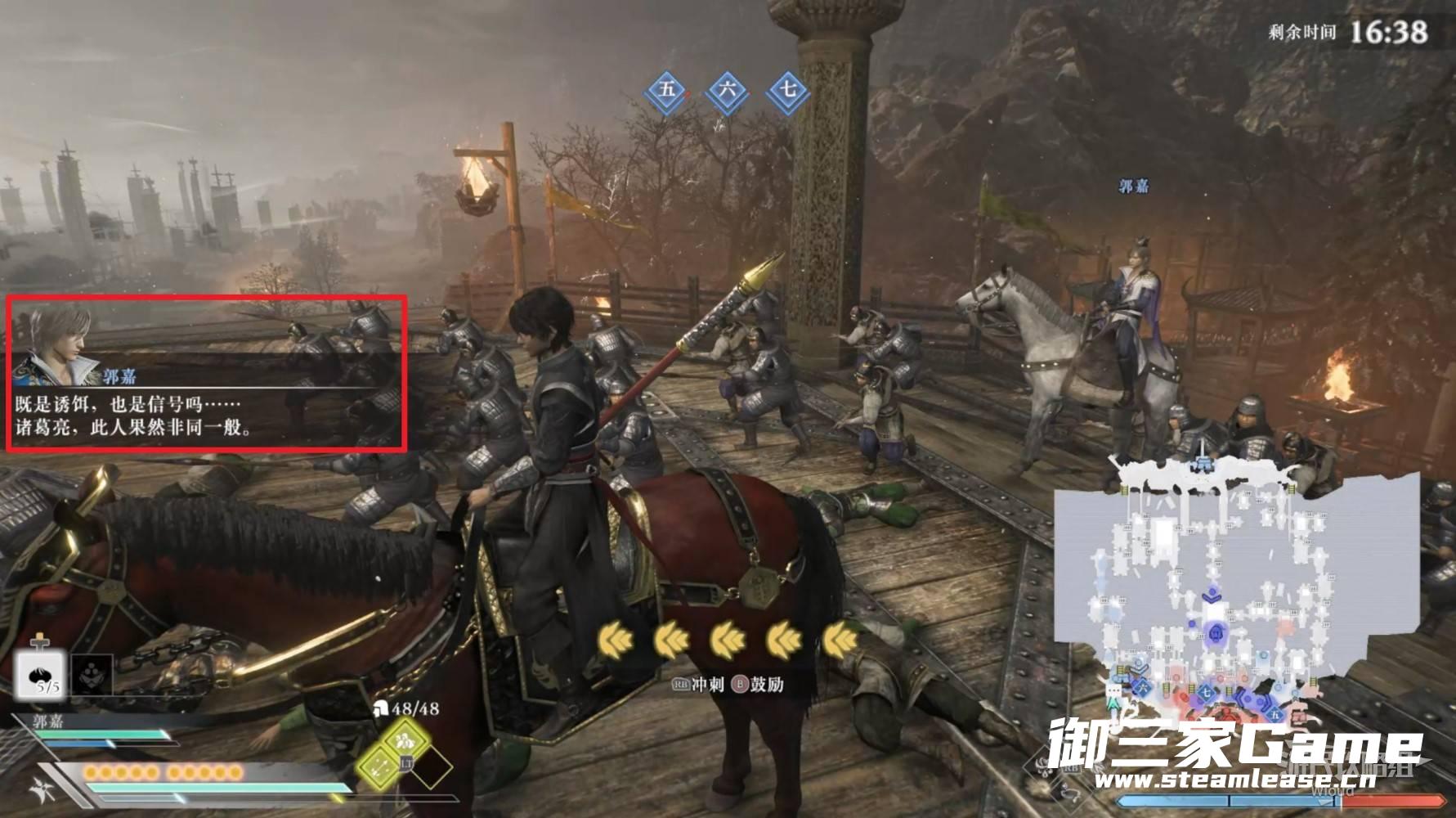 然后带着郭嘉前往地图左侧,诸葛亮所在的祭坛将诸葛亮击败。