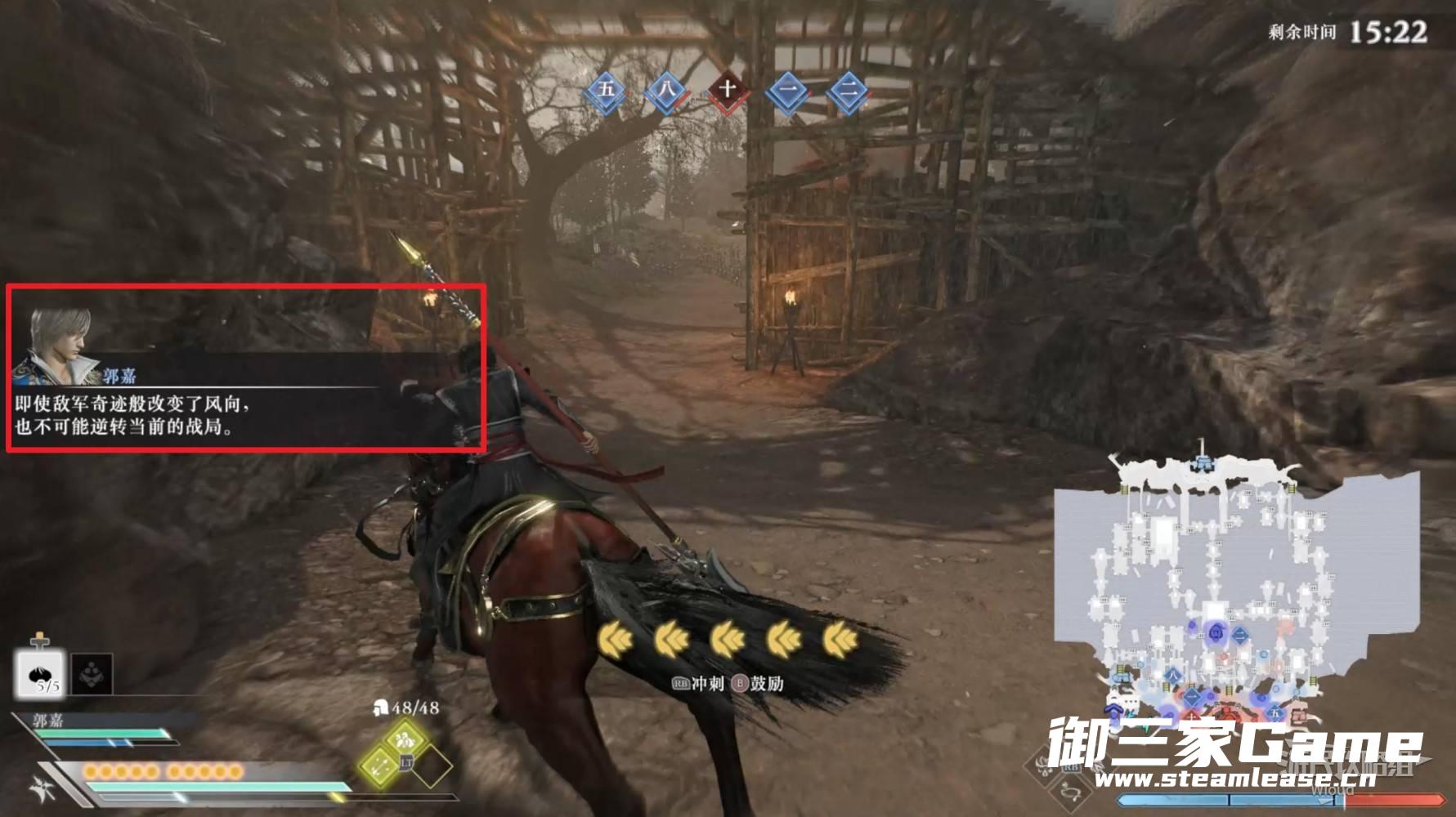 继续等待一会郭嘉会开始分析现场局势,等待郭嘉说完后地图会出现一个旗帜标点。