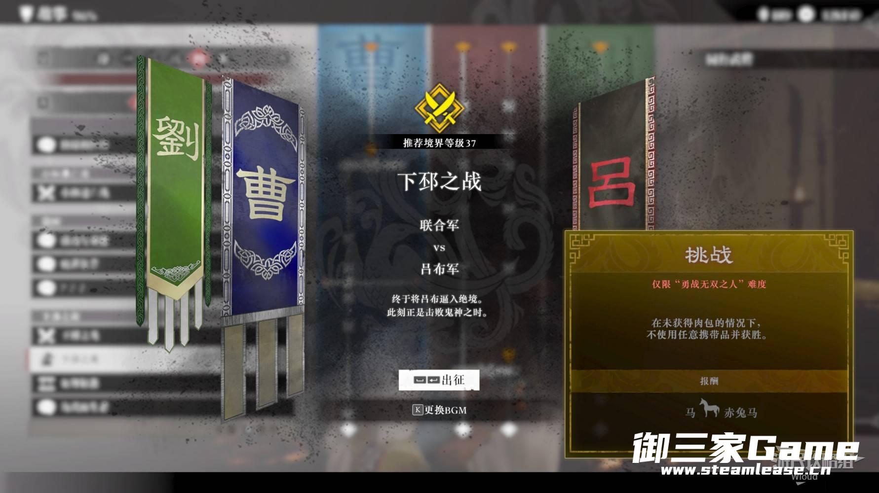 先进入随意势力通关一次解锁难度【勇战无双之人】,二周目的第四章进入刘备或曹操线,在【勇战无双之人】难度中不获取肉包以及使用任何携带品击败下邳之战的吕布解锁。