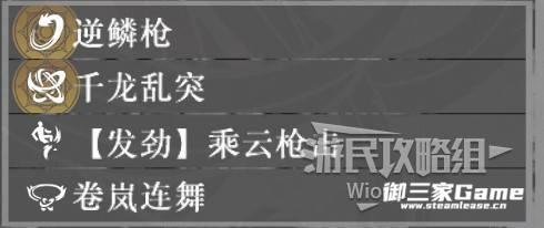 逆鳞枪:摆出化解敌人攻击的架势,期间若承受攻击,则会迅速发动反击。