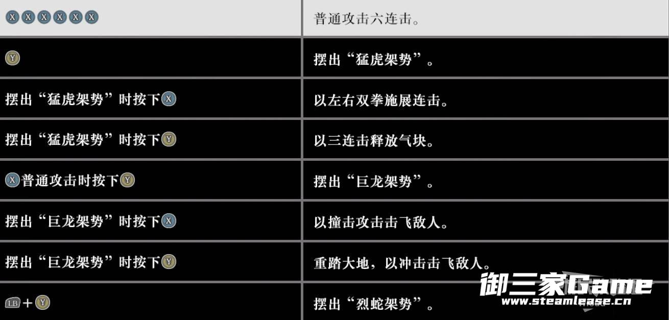 猛虎架势重攻击:原地打出三拳重击,对面前敌人造成大量伤害。