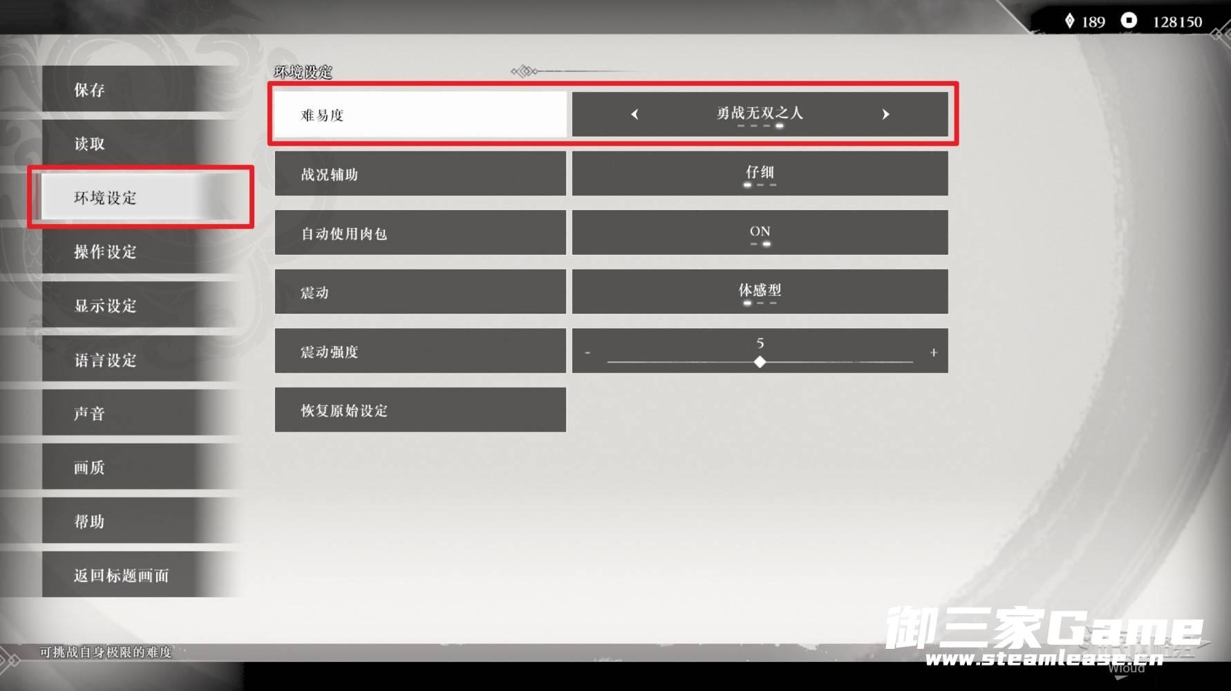 先通关任意剧情线一次,解锁难度【勇战无双之人】,进入设置页面选择【环境设置】选择改为【勇战无双之人】。