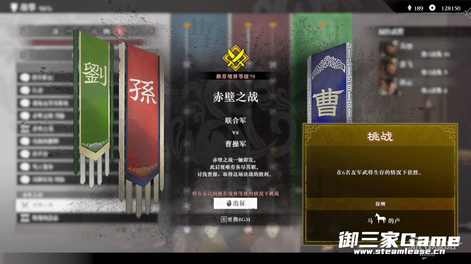 使用【勇战无双之人】难度在刘备线第五章的【赤壁之战】中保护起码有6名己方武将存活的情况下结束战斗即可获得的卢。