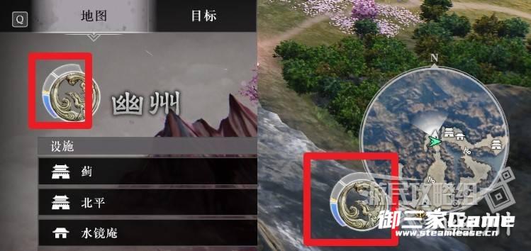 太平值会显示在大地图界面的左上角,就在是区域名称左侧圆形图标的左上方半圆形计量表。在大地图进行探索时,会显示在右下角小地图左侧底部的圆形图标旁边。完成区域中的区域任务或其他可重复刷取的战斗任务都可以提升州郡的太平值。
