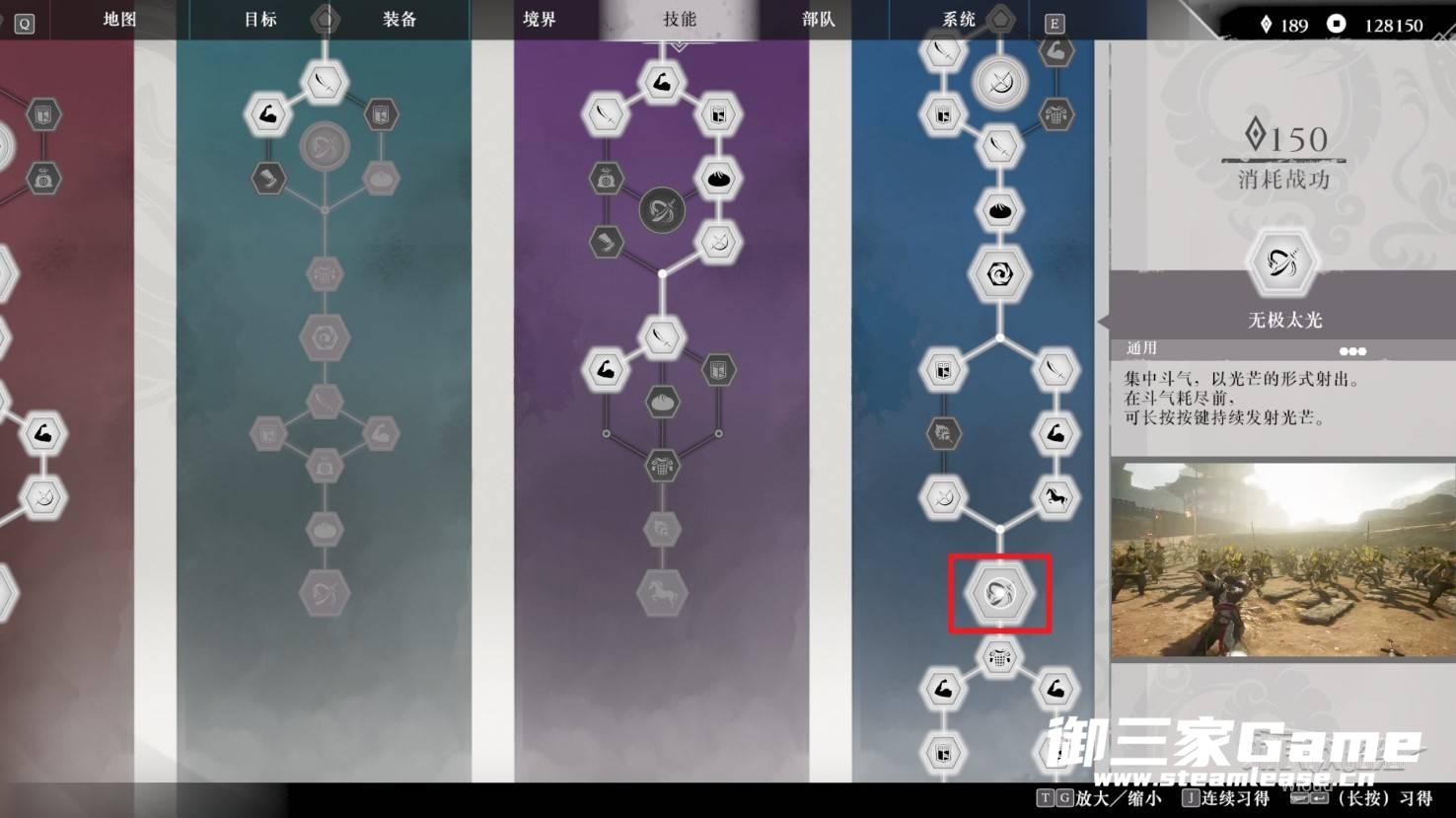 等待技能书解锁【无双之境界】后,点技能树红框所示的技能解锁。
