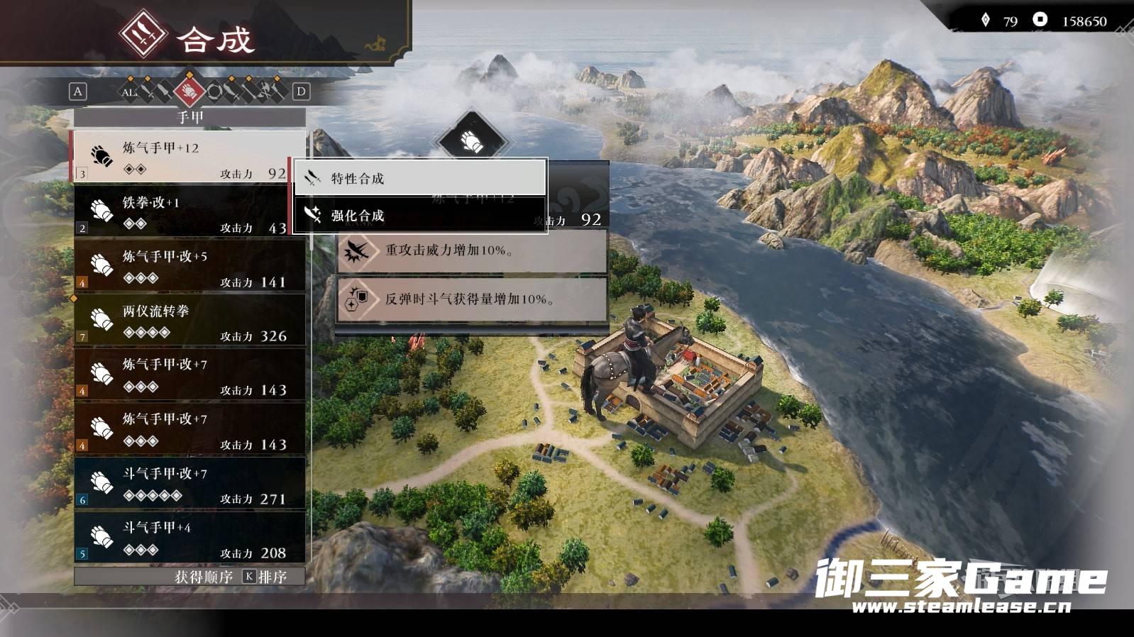 通关后读取通关存档,在任意城镇的武器店下方可以进行【武器合成】。武器合成可以强化武器,分为【特性合成】和【强化合成】,在强化中可以叠加相同名称的武器,提升其攻击力。但用作素材的武器将会消失,这一点需要注意。