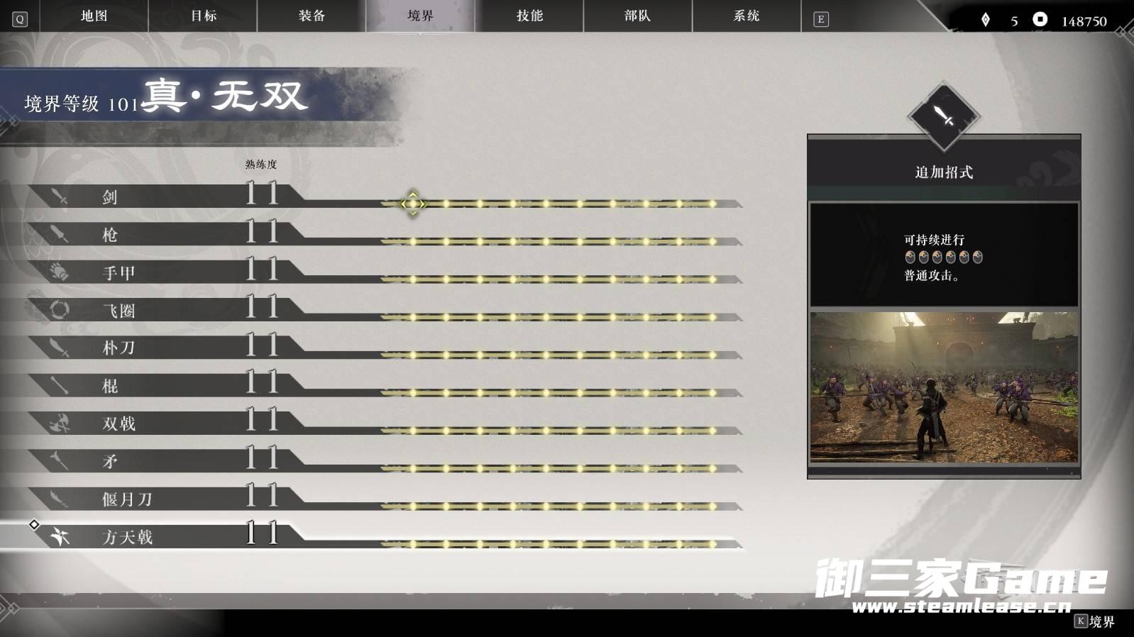 通关后读取通关存档,即可解锁【真·无双之境界】。