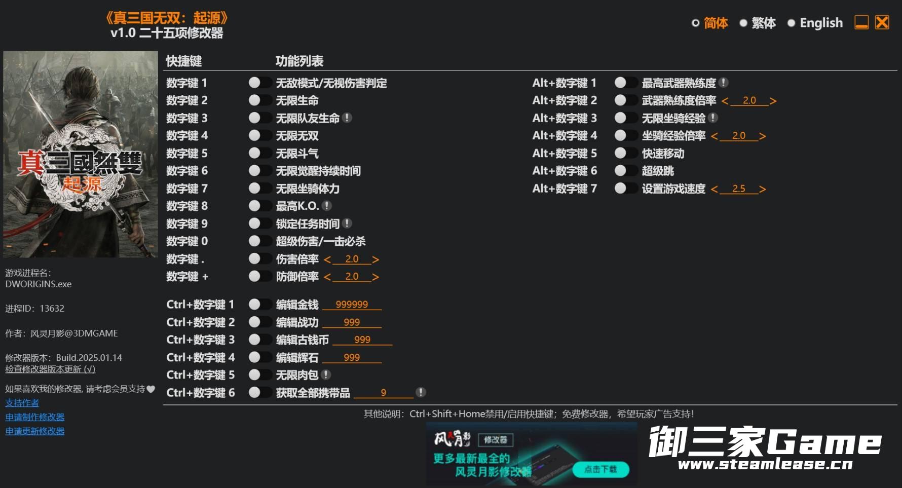 《真三国无双起源》风灵月影修改器下载地址:点击进入