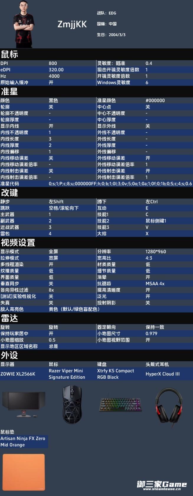 《无畏契约》键鼠和画面的设置会影响玩家们的操作手感,那么各个职业选手的设置是怎样的呢,下面请看《无畏契约》职业选手键鼠及画面设置一览,希望能够帮助大家。