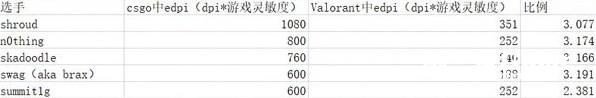 比例大约在3.17左右,也就是说把csgo的灵敏度乘以0.315就大约是你的Valorant灵敏度了。