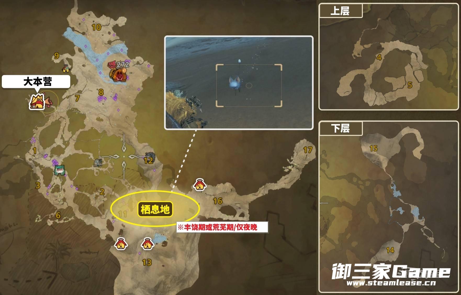沙野流星的刷新位置在天堑沙原的区域11至区域16之间,目前仅确定了它会在丰饶期与荒芜期的夜晚出现,建议提前通过任务或环境周期确认时间。注意,即使装备了隐身衣装,依然会触发沙野流星的逃离机制,建议保持距离或使用远程武器/陷阱进行捕捉和控制。