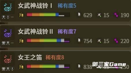 女武神战铃Ⅰ→女武神战铃Ⅱ→女王之笛。