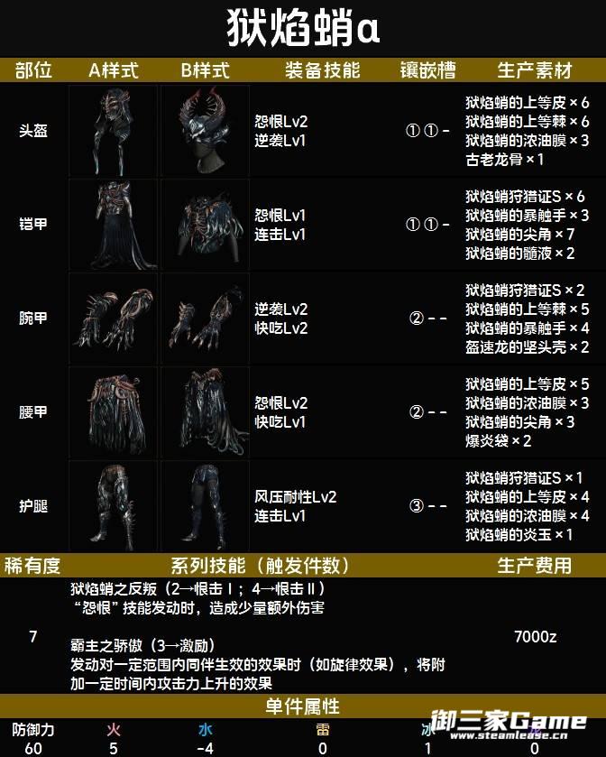 《怪物猎人荒野》中的狱焰蛸α套装是一套R7防具,带有一个三级孔。下面为大家带来《怪物猎人荒野》狱焰蛸α套装图鉴,希望对大家有用。