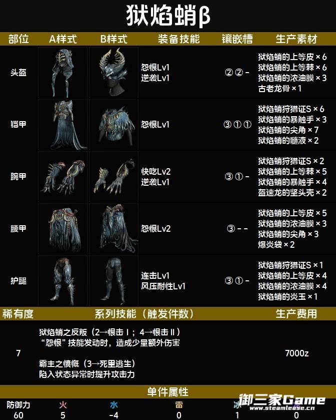 《怪物猎人荒野》中的狱焰蛸β套装是一套R7防具,拥有四个三级孔。下面为大家带来《怪物猎人荒野》狱焰蛸β套装图鉴,希望对大家有用。