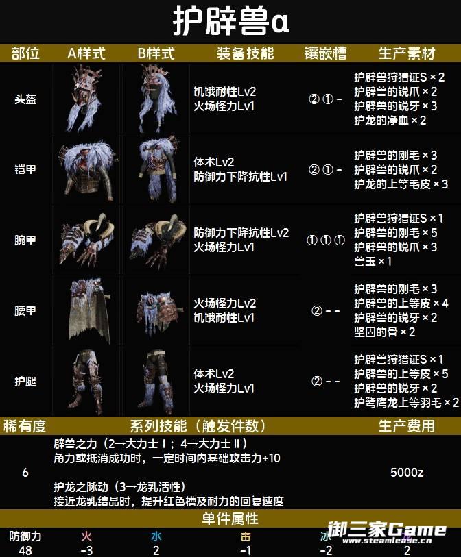 《怪物猎人荒野》中的护辟兽α套装是一套R6防具,不仅技能多,并且孔位也不少。下面为大家带来《怪物猎人荒野》护辟兽α套装图鉴,希望对大家有用。