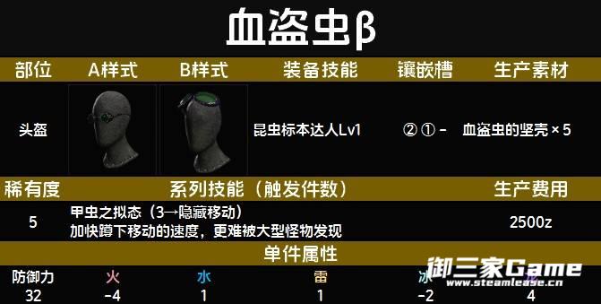 《怪物猎人荒野》血盗虫β装备在外观方面与血盗虫α差不多,但是在技能、镶嵌槽方面与其有所差别。下面为大家带来《怪物猎人荒野》血盗虫β装备图鉴,一起来看看吧。