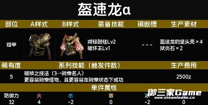 《怪物猎人荒野》中盔速龙α装备只有铠甲部分,拥有两个技能,但是没有孔位。下面为大家带来《怪物猎人荒野》盔速龙α装备图鉴,希望对大家有用。