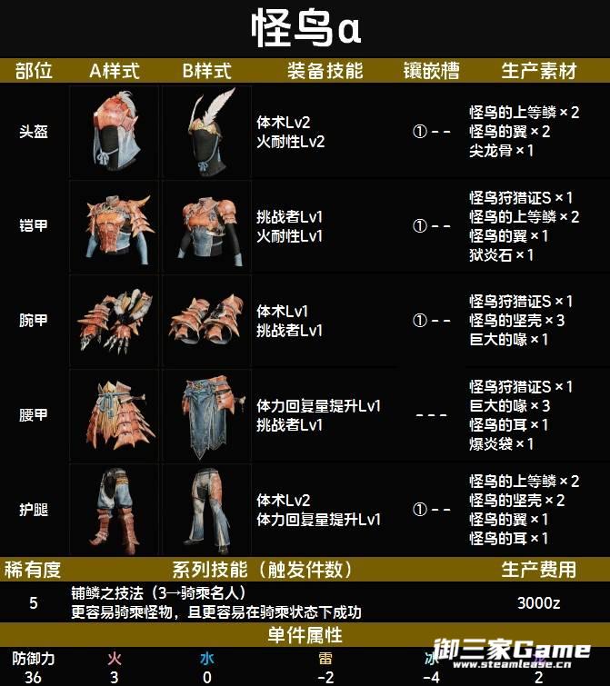 《怪物猎人荒野》中的怪鸟α套装是一套R5的防具,装备技能较多,但是孔位较少。下面为大家带来《怪物猎人荒野》怪鸟α套装图鉴,希望对大家有用。