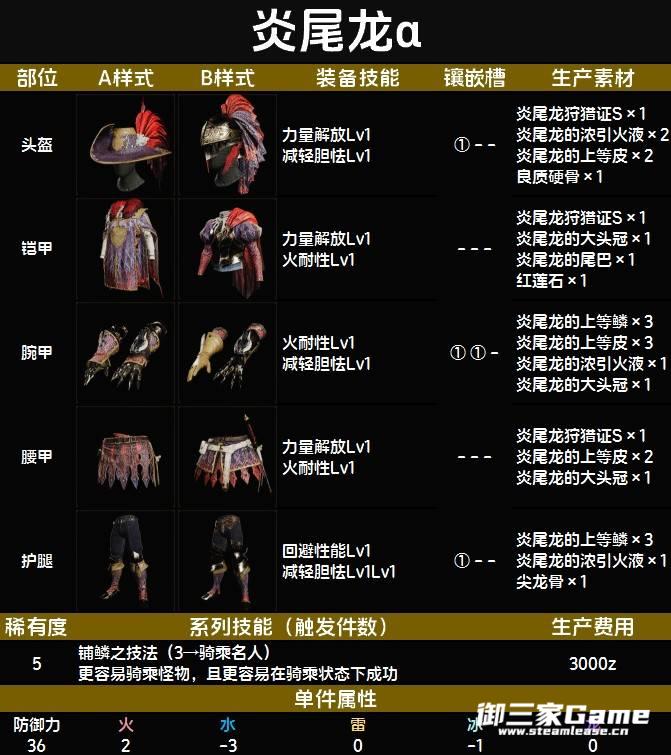 《怪物猎人荒野》的炎尾龙α套装空位较少,但是每件装备都有两个技能,稀有度为R5。下面为大家带来《怪物猎人荒野》炎尾龙α套装图鉴,希望对大家有用。