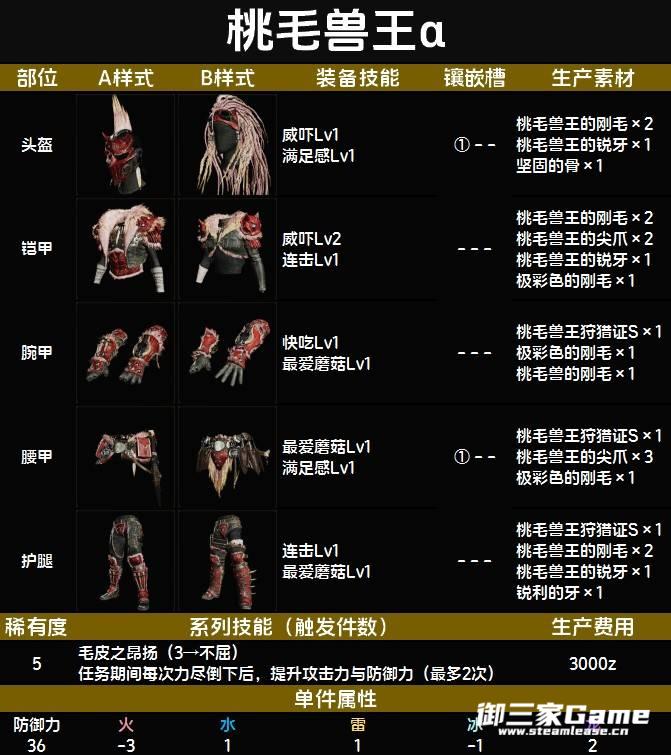 《怪物猎人荒野》中的桃毛兽王α套装是一套R5的防具,装备技能较多,但是只有两个1级孔。下面为大家带来《怪物猎人荒野》桃毛兽王α套装图鉴,希望对大家有用。